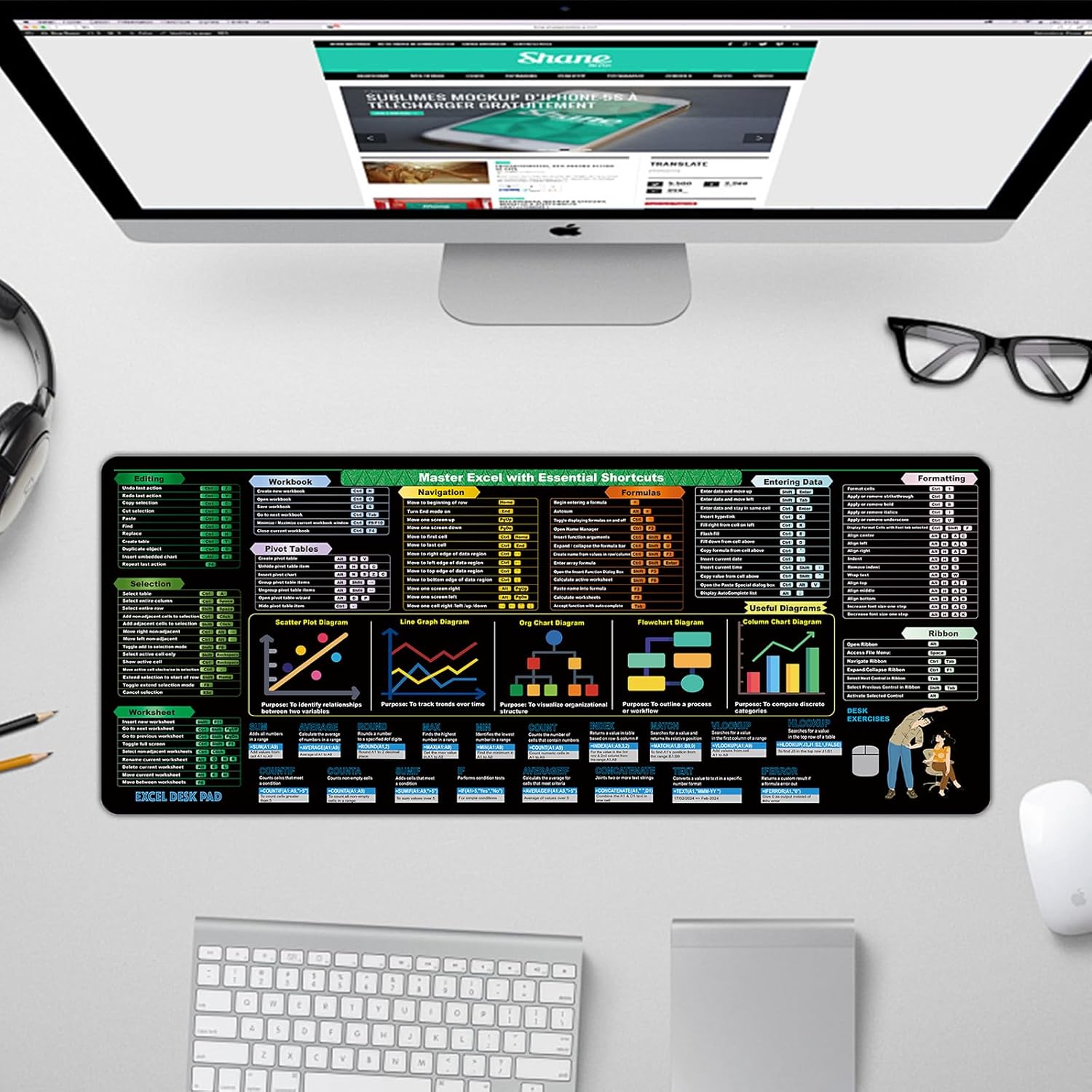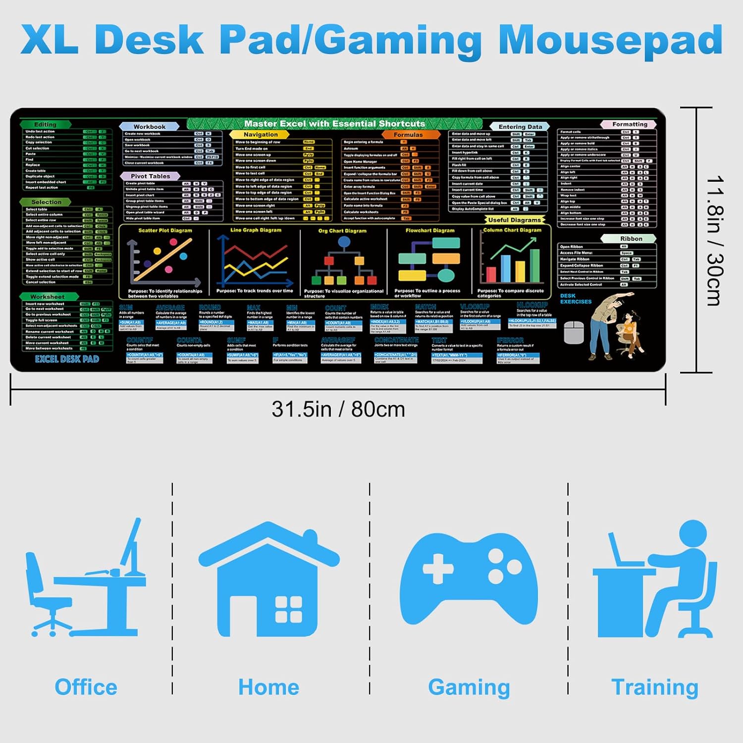 Featuring a comprehensive compilation of 2024 shortcut keys and formulas, this reference mat is a must-have for accountants, coders, and anyone looking to excel in Excel. The non-slip XL office desk mat ensures that your mousepad stays securely in place, even during intense spreadsheet sessions.