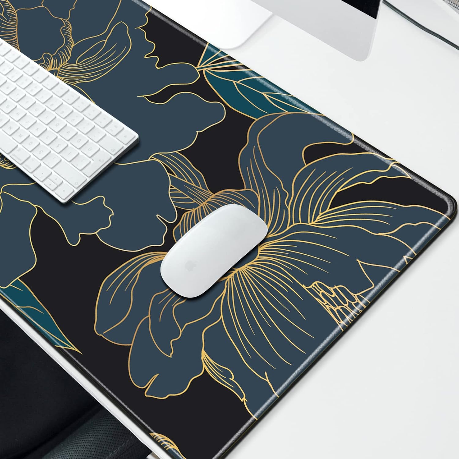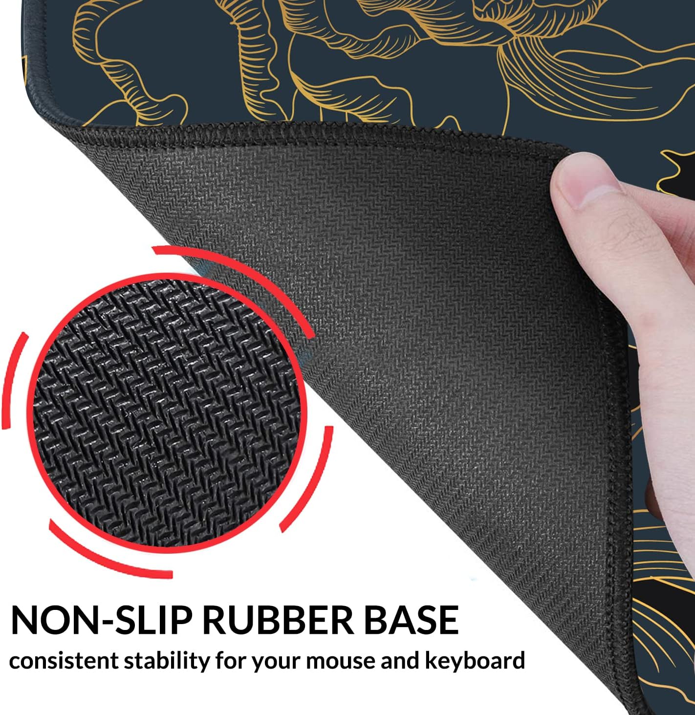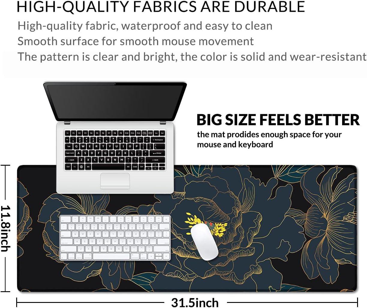 Measuring 31.5 x 11.8 inches, this spacious desk pad offers ample space for your laptop, mouse, and other essentials, providing a smooth surface for writing, typing, and gaming. The elegant Golden Black Tropical Flowers design adds a touch of sophistication to your desk, creating a stylish and inspiring work environment.